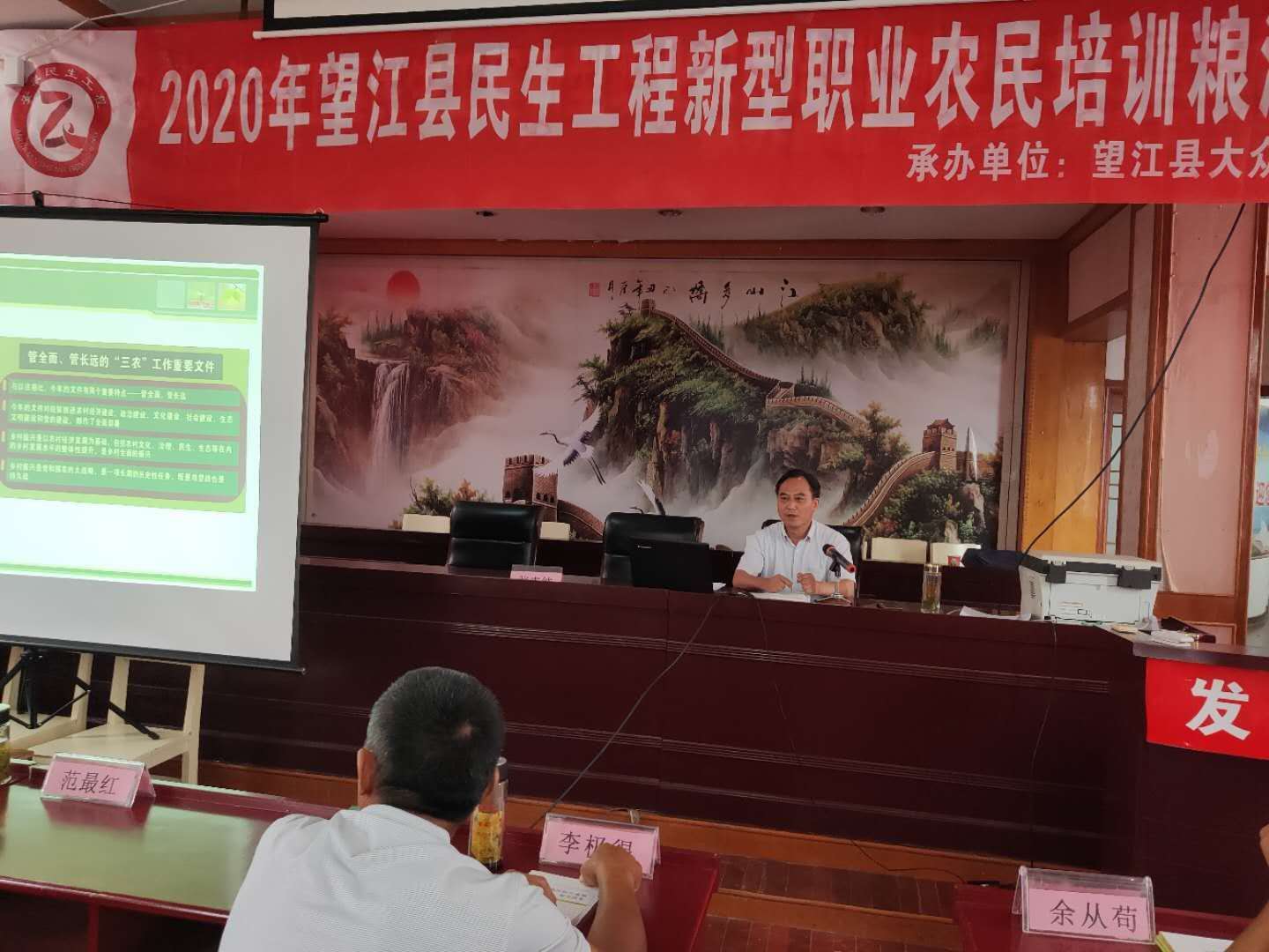7月2日,太阳集团tyc151cc(乡村振兴学院)院长洪为宝应邀为2020年望江县民生工程新型职业农民培训班作了《脱贫攻坚与乡村振兴接续推进的政策解读——基于教育视角》的专题培训报告。